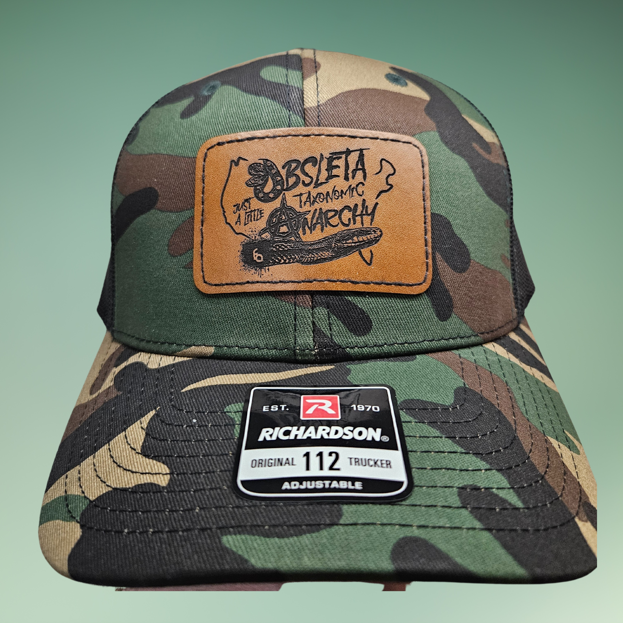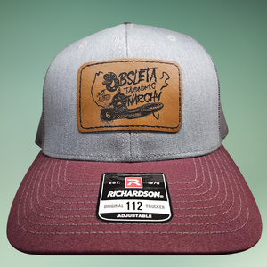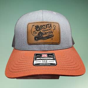 Done on Richardson 112 structure hats. Available in Camo/black, heather grey/dark orange/charcoal or maroon/heather grey/ charcoal.