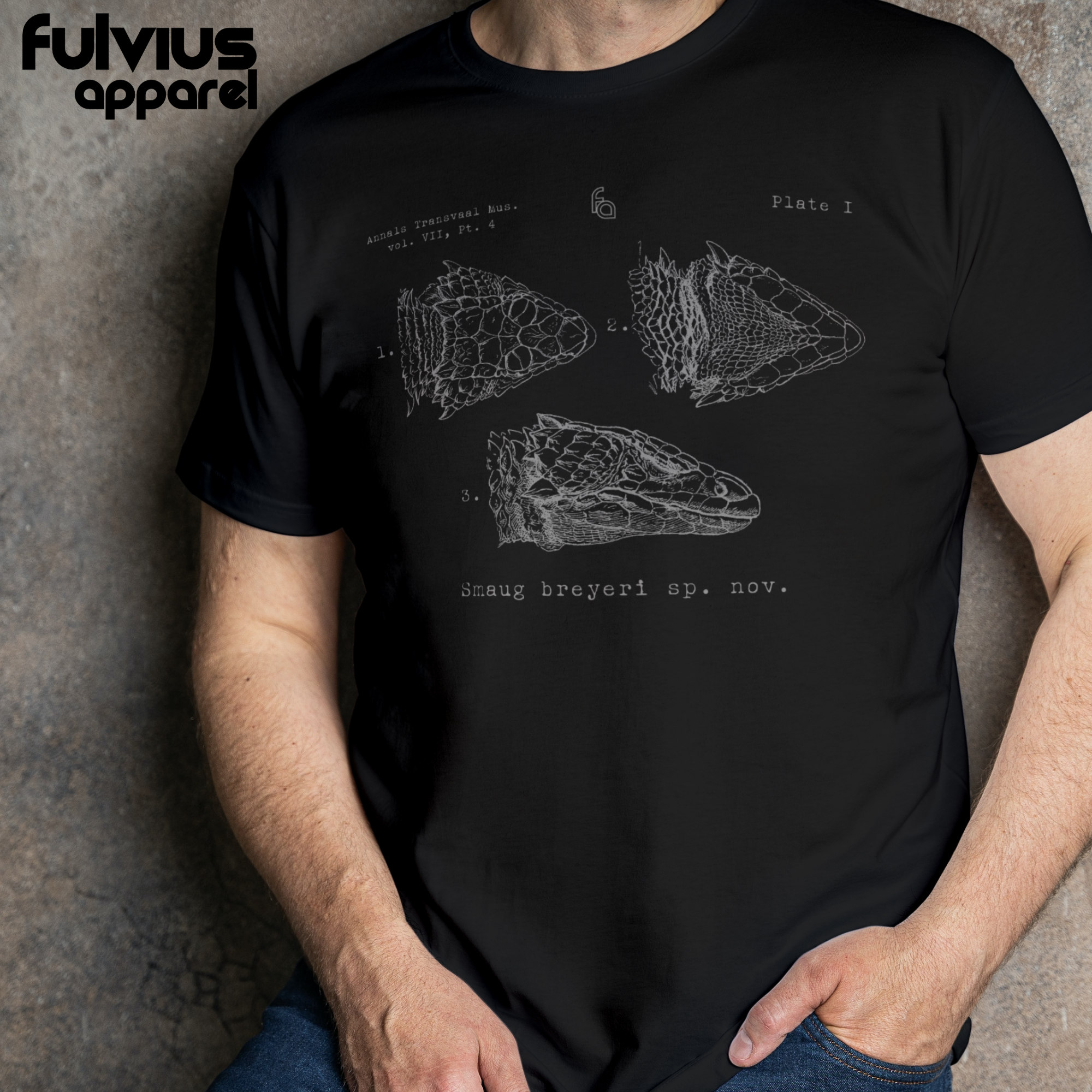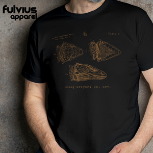 A vintage illustration of Smaug breyeri. Printed on an ultra soft 100% ring spun cotton tees. Available in black with either rust colored art or silver.