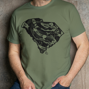 Printed on an ultra soft 100% ring spun cotton tees. Available in Iris, Military Green, Coyote Brown, and Kiwi