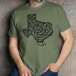 Subocs and Texas herping have cult followings, join this cult. Printed on an ultra soft ring spun cotton shirts. Available in Military Green, Ochre Yellow, and Texas Orange.