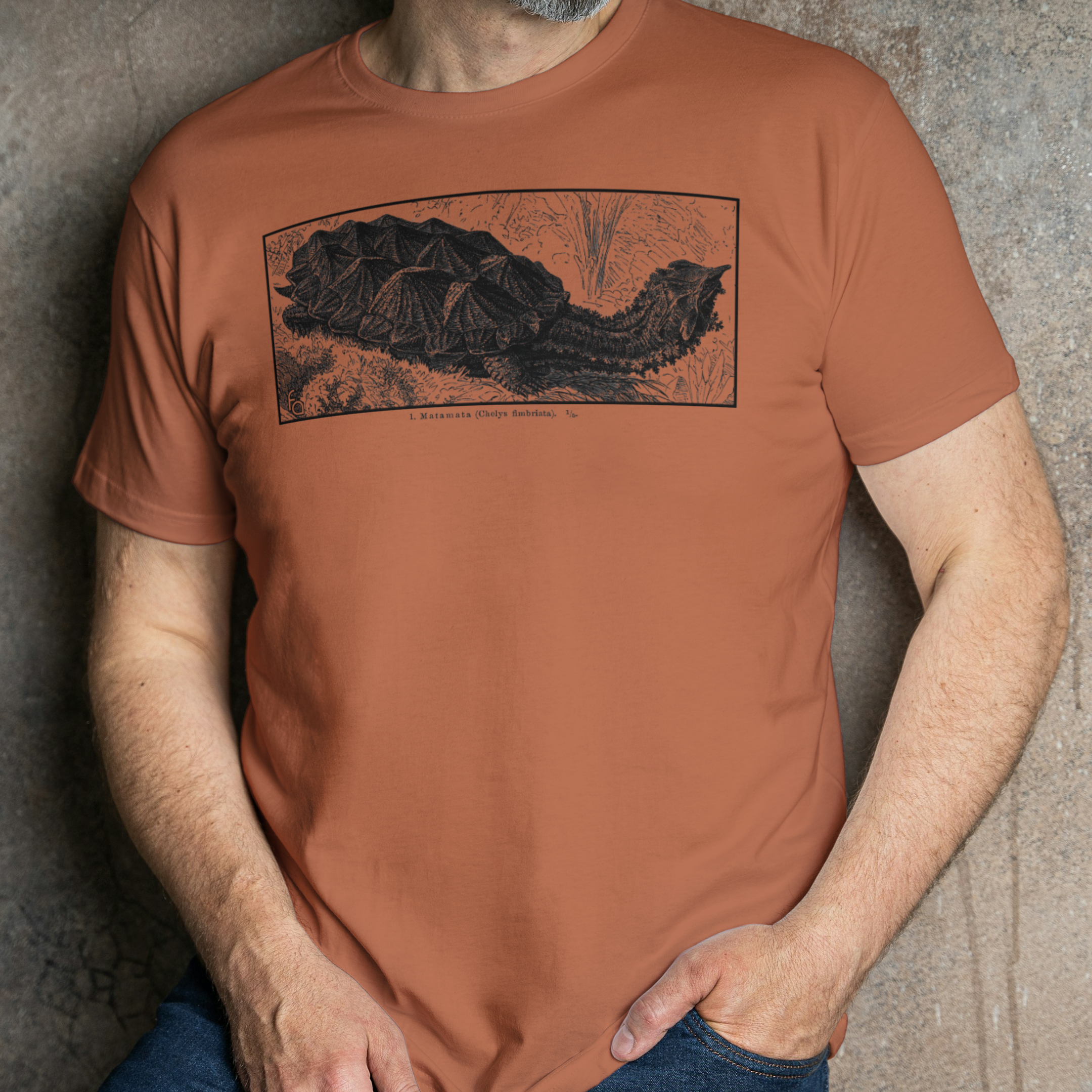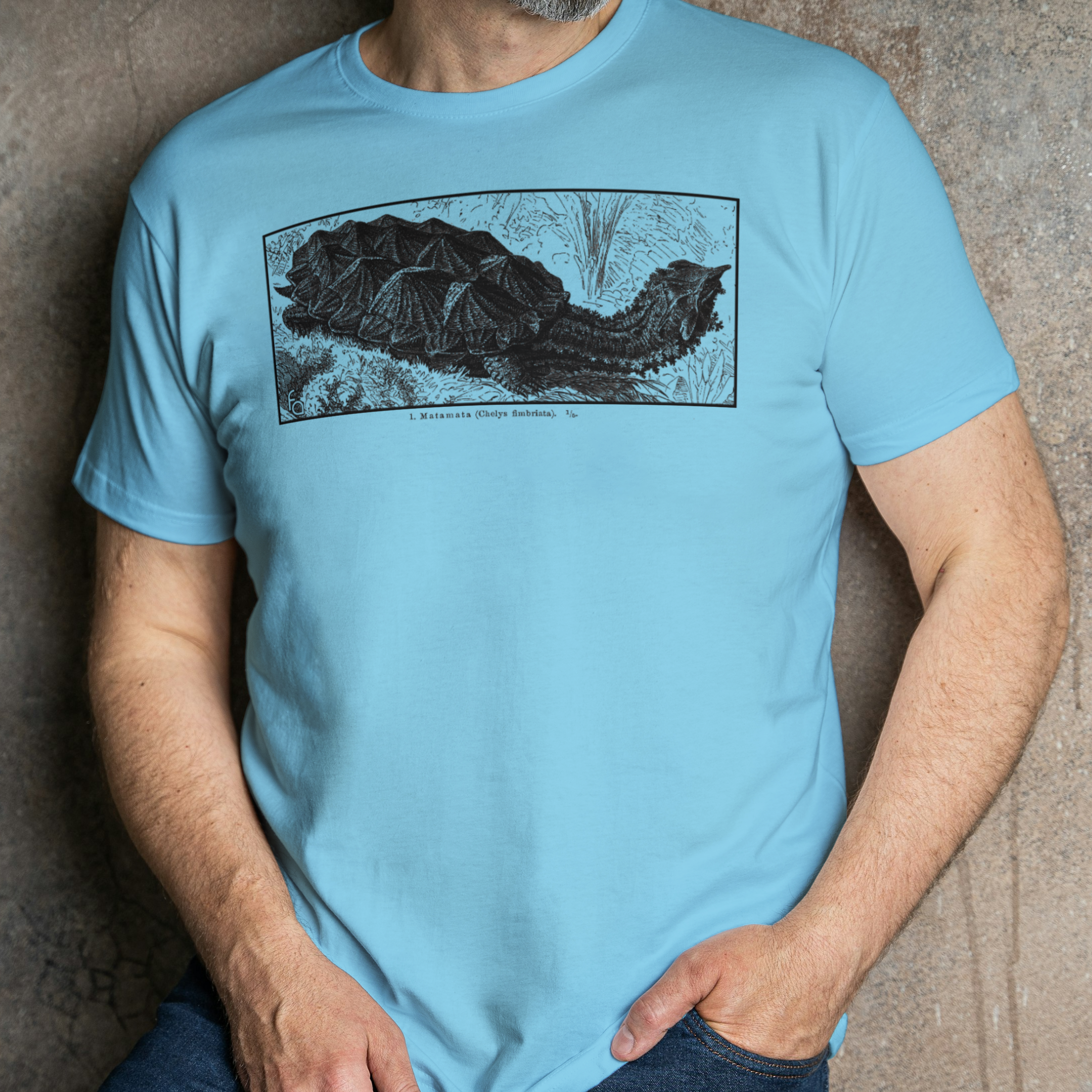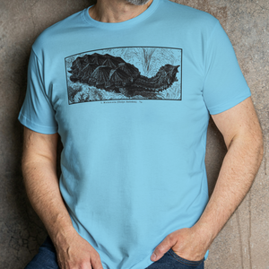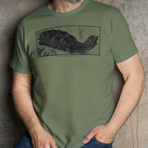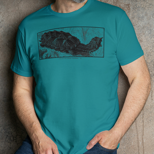 The iconic Mata Mata now printed on an ultra soft ring-spun cotton shirts! Available in Laurel Green, Jade Dome, TX Orange, Sky Blue and Military Green.
